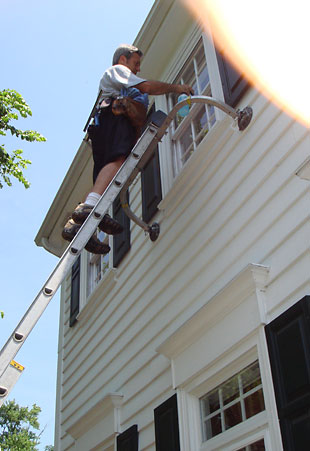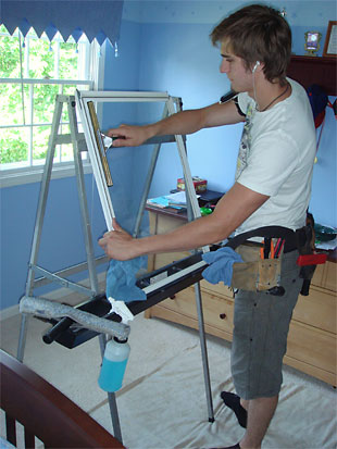 Storm windows are taken out and cleaned on a special “easel”. Tarps and towels are used to protect your floors. We leave no mess.